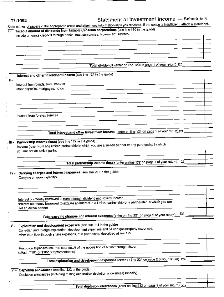 5004-S5 Schedule 5 — New Brunswick — T1 General 1992 — Statement of investment income. Choose a blank template from the list and complete it instantly. Try now!