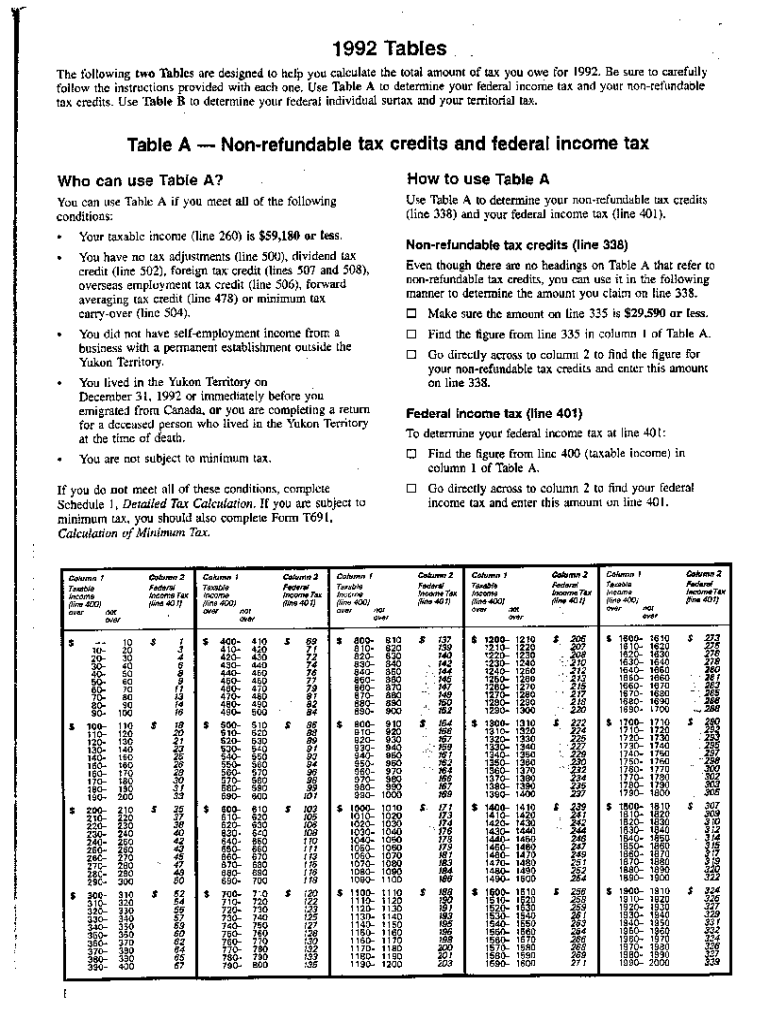 5011-TABLE-A Table A 1992 Non-refundable tax credits and federal income tax — Yukon. Choose a blank template from the list and complete it instantly. Try now!