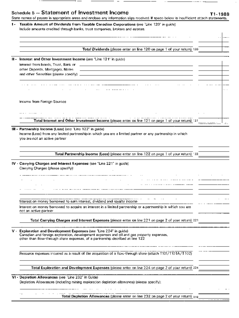 5003-S5 Schedule 5 — Nova Scotia — T1 General 1989 — Statement of investment income. Choose a blank template from the list and complete it instantly. Try now!
