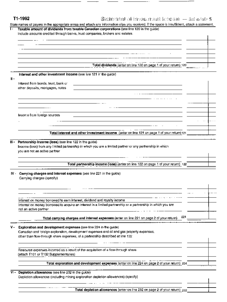 5003-S5 Schedule 5 — Nova Scotia — T1 General 1992 — Statement of investment income. Choose a blank template from the list and complete it instantly. Try now!