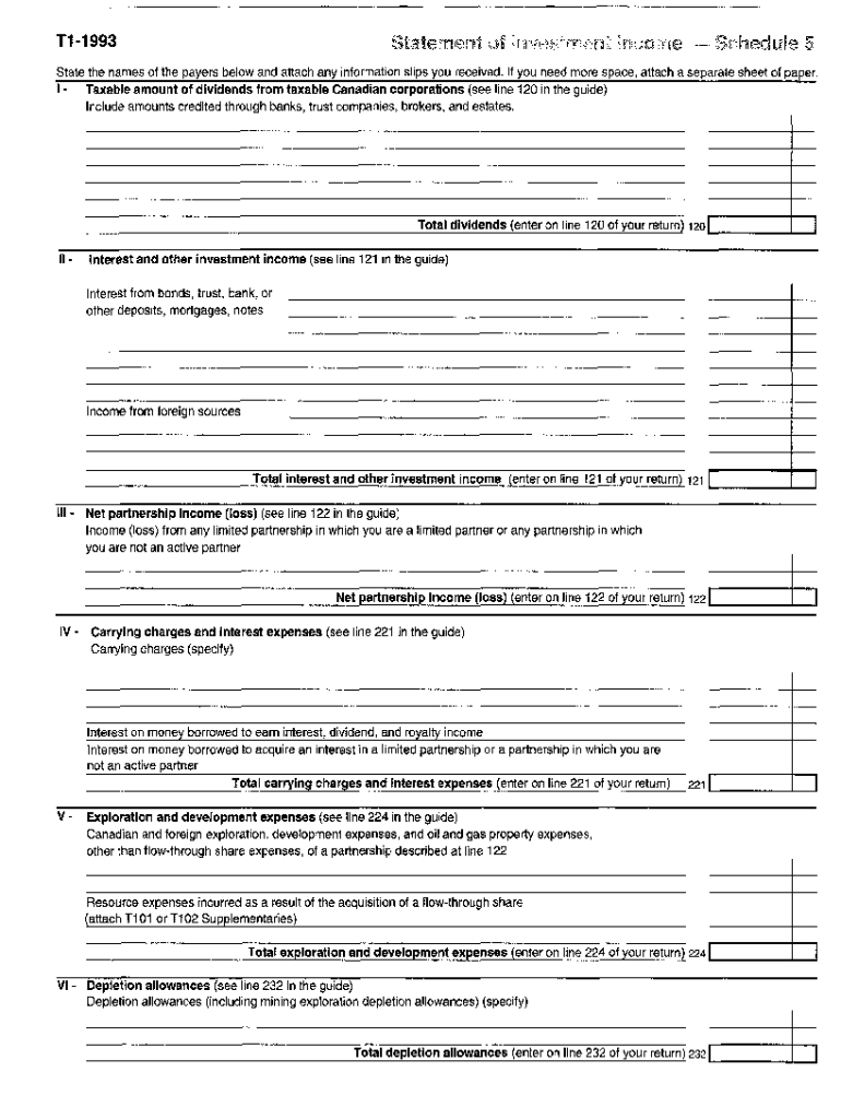 5003-S5 Schedule 5 — Nova Scotia — T1 General 1993 — Statement of investment income. Choose a blank template from the list and complete it instantly. Try now!
