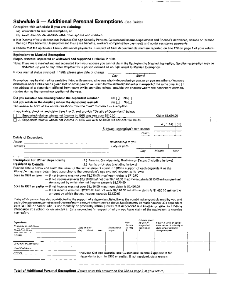 5003-S6 Schedule 6 — Nova Scotia — T1 General 1985 — Additional personal exemptions. Choose a blank template from the list and complete it instantly. Try now!