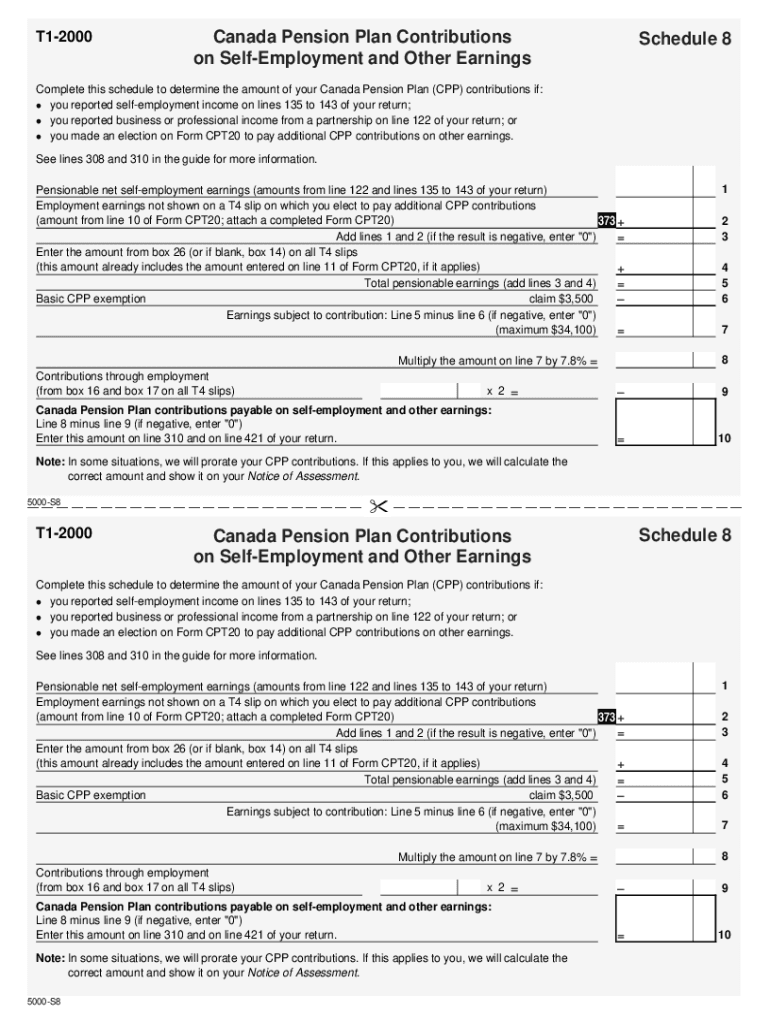 5000-S8 T1 General 2000 Schedule 8 — Common (Except Quebec) — Non-residents of Canada. Choose a blank template from the list and complete it instantly. Try now!