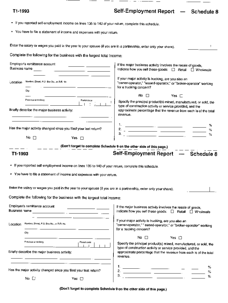 5004-S8 Schedule 8 — New Brunswick — T1 General 1993 — Self-employment report. Choose a blank template from the list and complete it instantly. Try now!