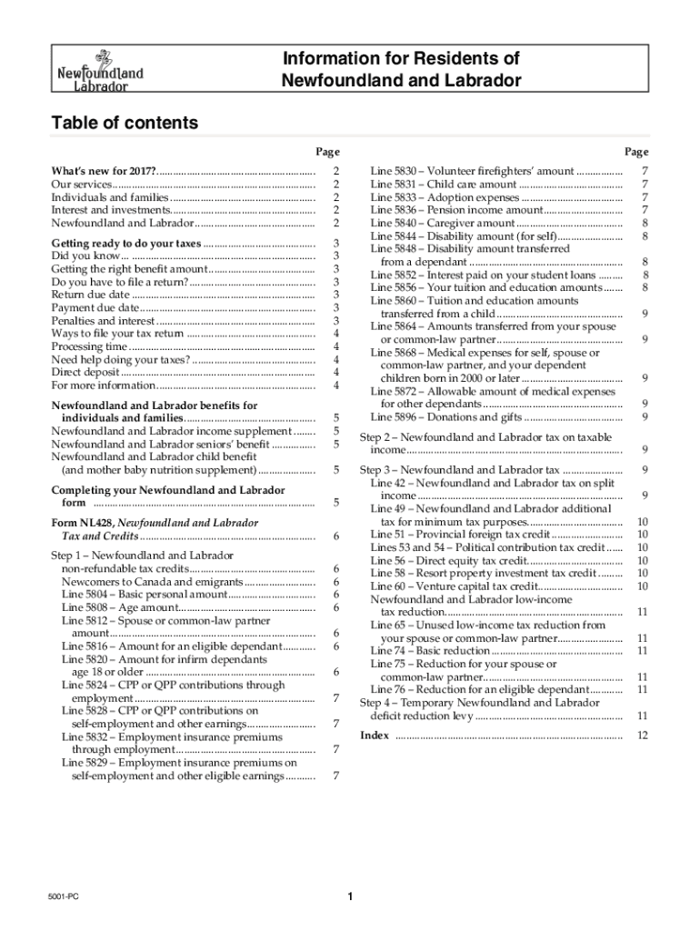 Get the free 5001-PC T1 General 2017 - Information for Residents of Newfoundland and Labrador