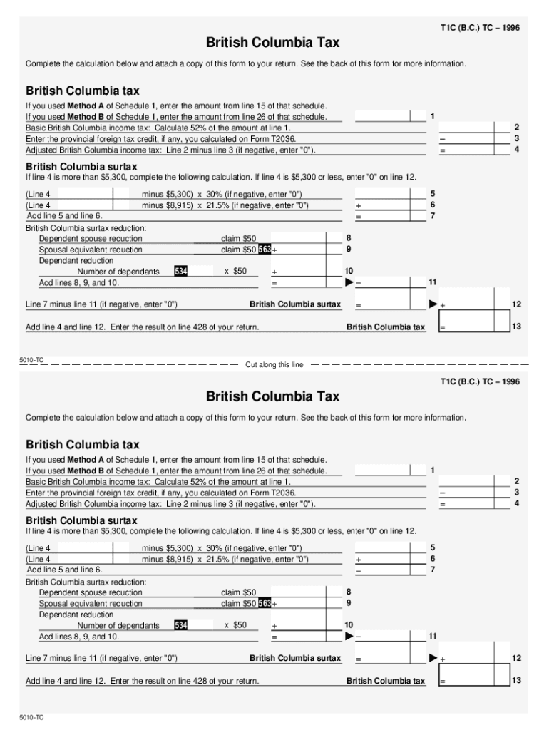 Get the free 5010-TC T1 General 1996 T1C-TC - British Columbia - BC 479 5010-TC 5110-TC
