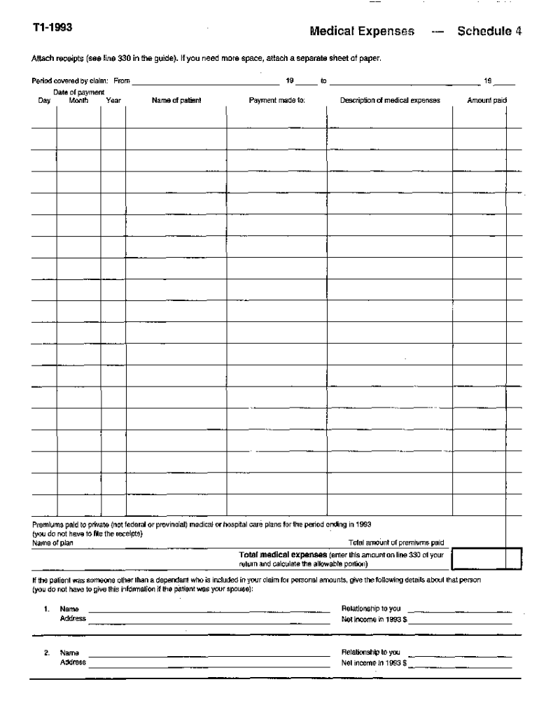 5010-S4 Schedule 4 — British Columbia — T1 General 1993 — Medical expenses. Choose a blank template from the list and complete it instantly. Try now!