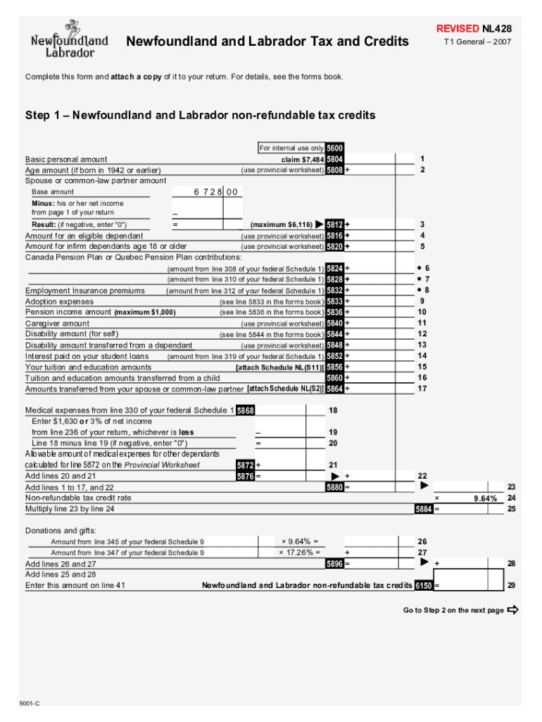 5001-C NL 428 — Newfoundland and Labrador Tax and Credits — T1 General 2007. Choose a blank template from the list and complete it instantly. Try now!