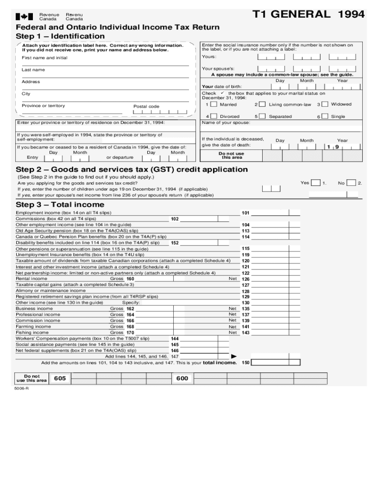 5006-R T1 General 1994 — Income Tax and Benefit Return — Ontario Only. Choose a blank template from the list and complete it instantly. Try now!