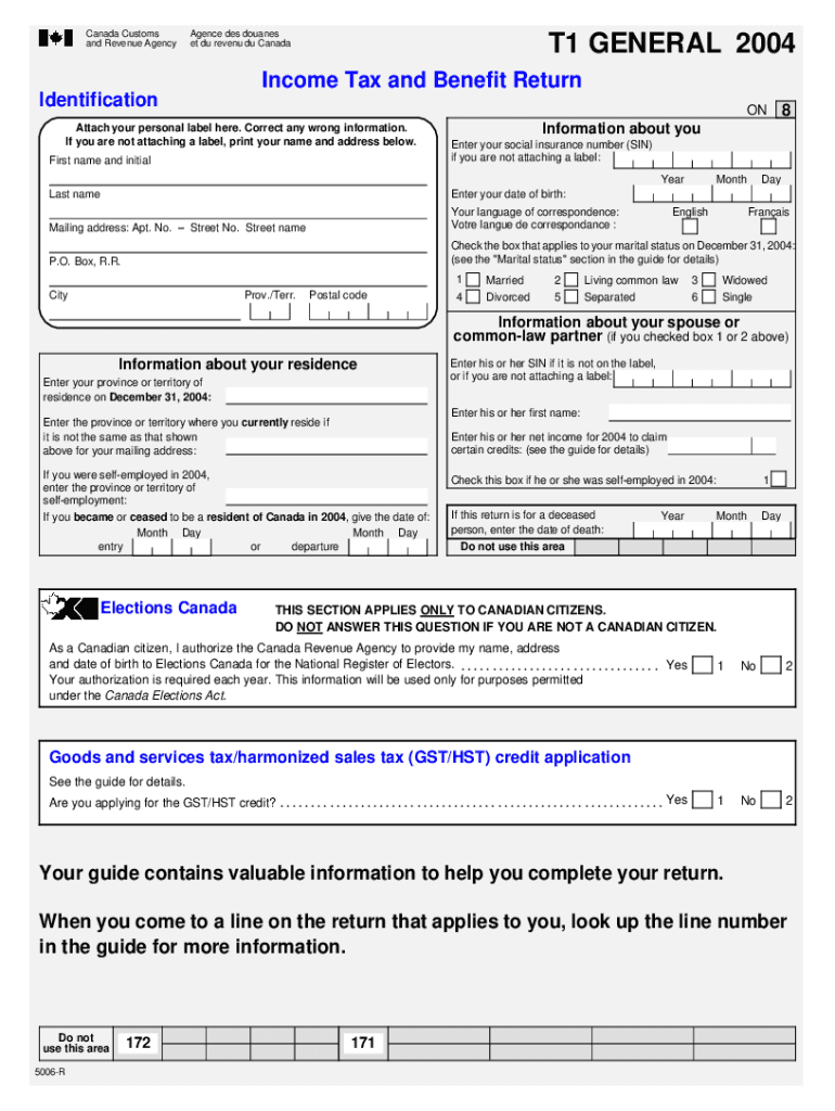 Form 5006-R T1 General 2004 is needed by Canadian individuals who need to complete their income tax return for the tax year 2004.