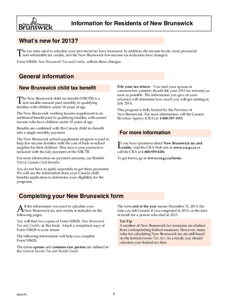 5004-PC T1 General 2013 — Information for Residents of New Brunswick. Choose a blank template from the list and complete it instantly. Try now!