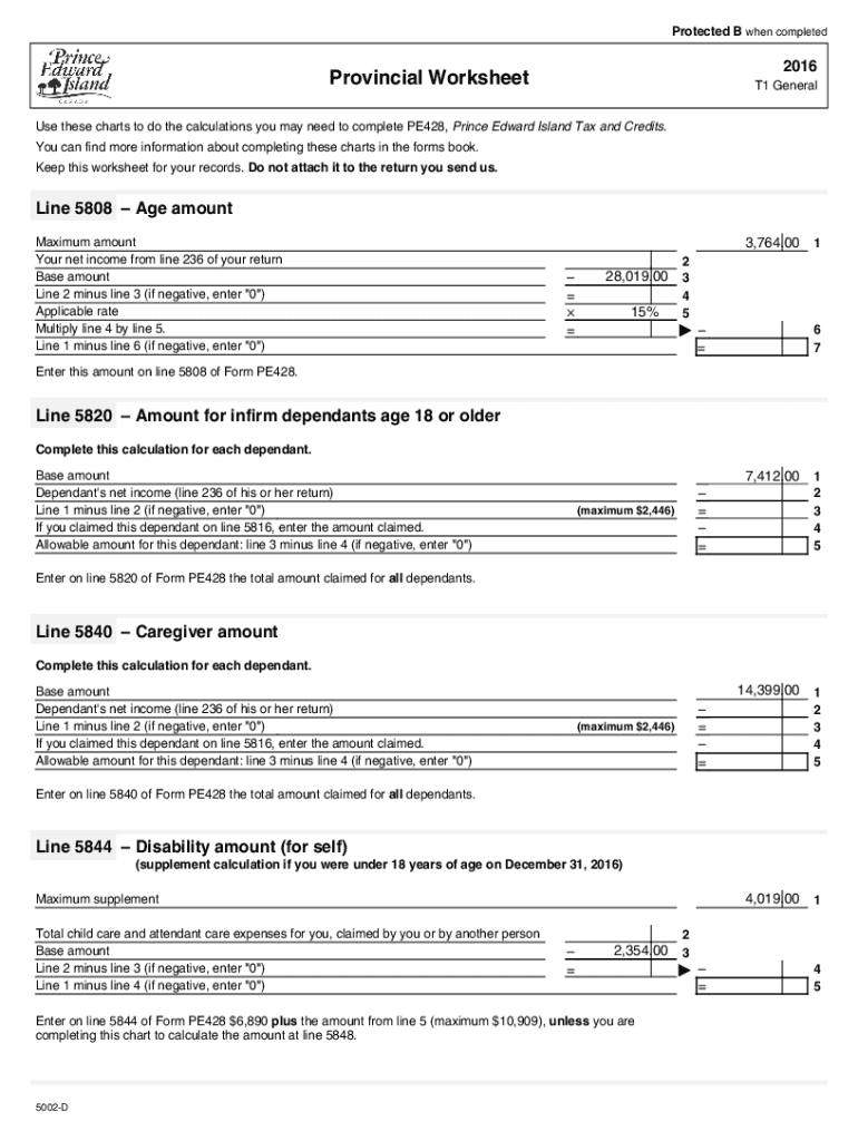 5002-D T1 General 2016 — Provincial Worksheet — Prince Edward Island. Choose a blank template from the list and complete it instantly. Try now!