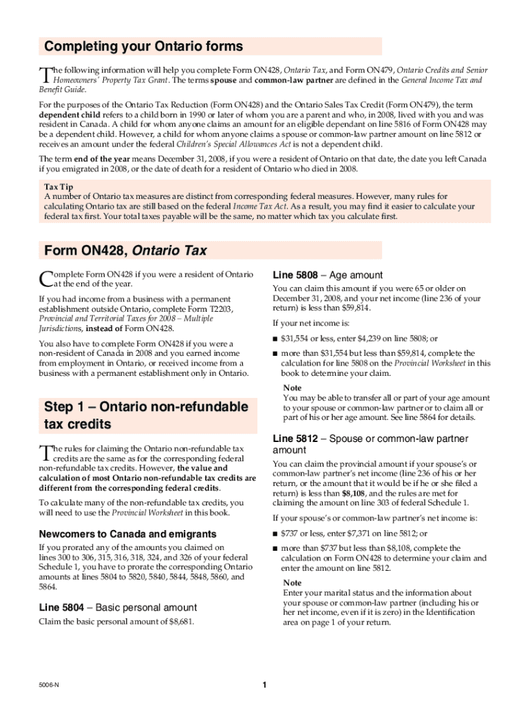 5006-N Completing Your Ontario Forms — T1 General 2008 filler. Choose a blank template from the list and complete it instantly. Try now!