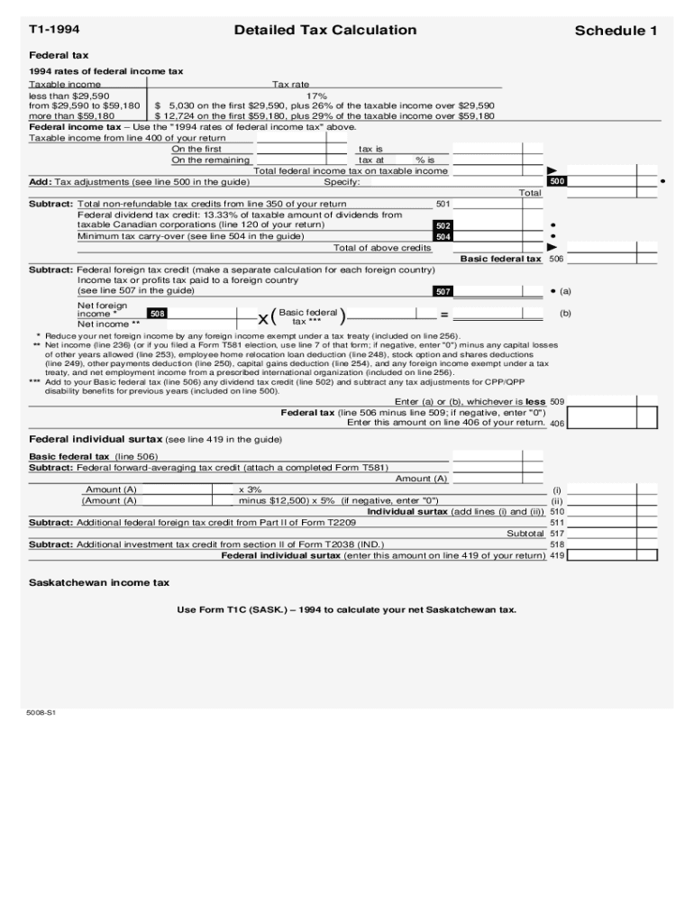 5008-S1 Schedule 1 — Saskatchewan — T1 General 1994 filler. Choose a blank template from the list and complete it instantly. Try now!