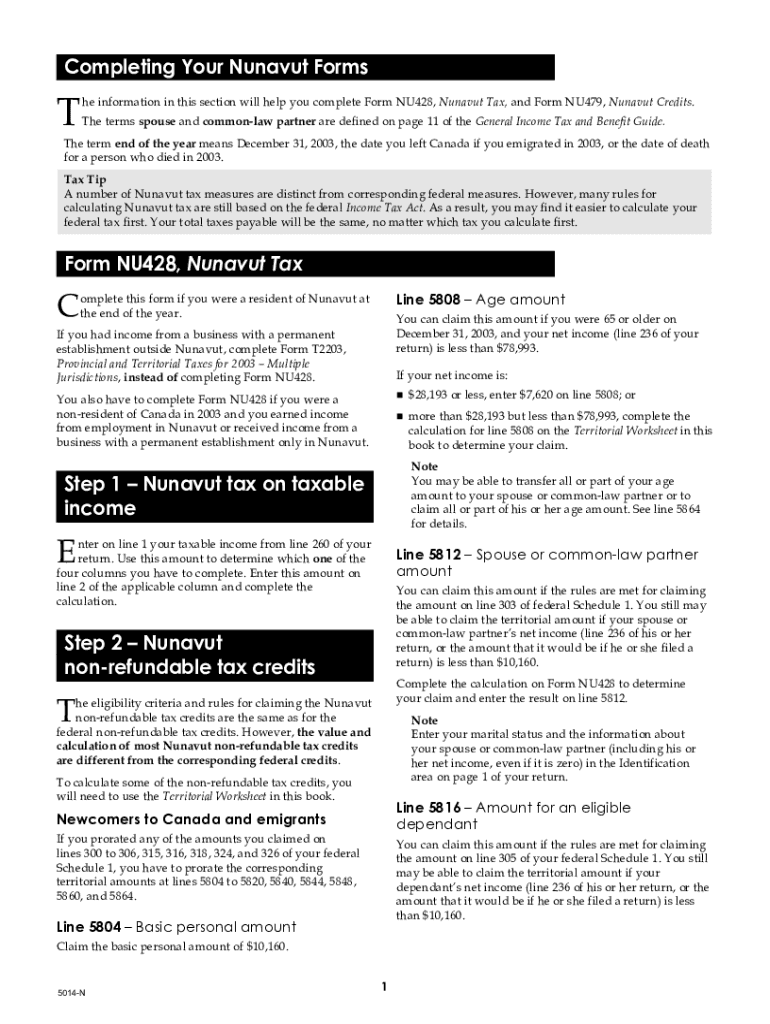 Get the free 5014-N Completing your Nunavut Forms - T1 General 2003 pdfFiller