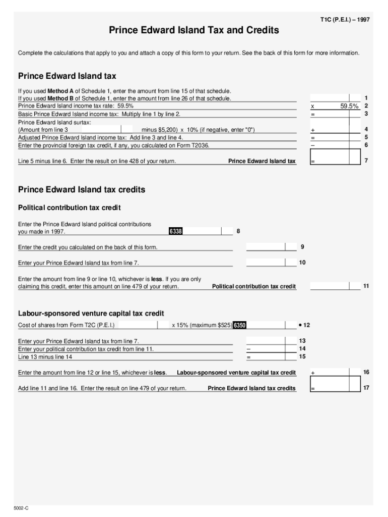 5002-C T1 General 1997 T1C — Prince Edward Island filler. Choose a blank template from the list and complete it instantly. Try now!