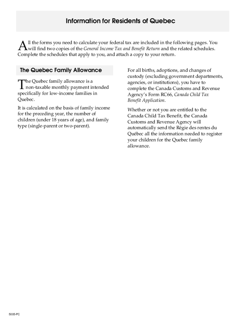 Get the free 5005-PC T1 General Information Sheet - Quebec 2000 pdfFiller