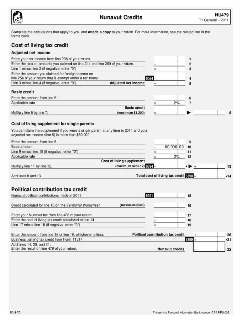 5014-TC T1 General 2011 — NU479 — Nunavut Credits filler. Choose a blank template from the list and complete it instantly. Try now!