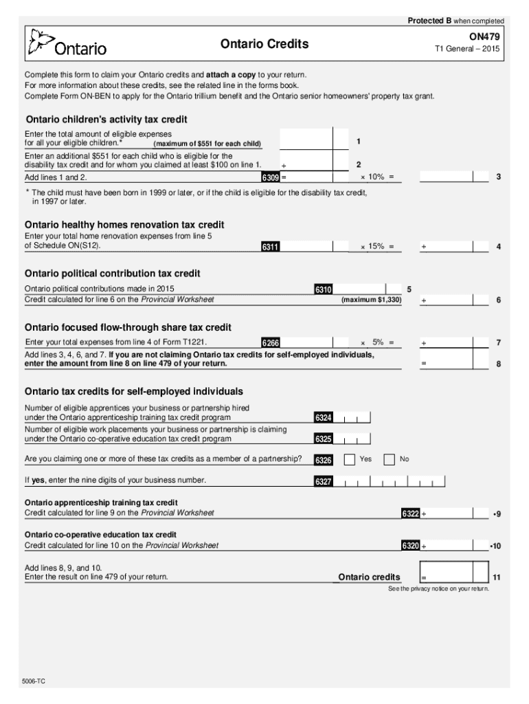 5006-TC T1 General 2015 — ON479 — Ontario Credits filler. Choose a blank template from the list and complete it instantly. Try now!