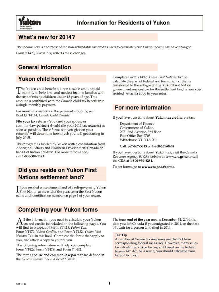 5011-PC T1 General 2014 — Information for Residents of Yukon. Choose a blank template from the list and complete it instantly. Try now!