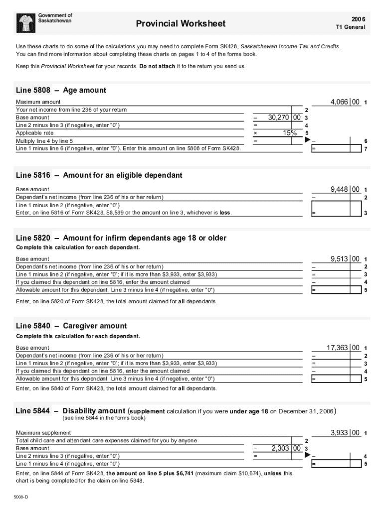 5008-D Provincial Worksheet — Saskatchewan — T1 General 2006. Choose a blank template from the list and complete it instantly. Try now!