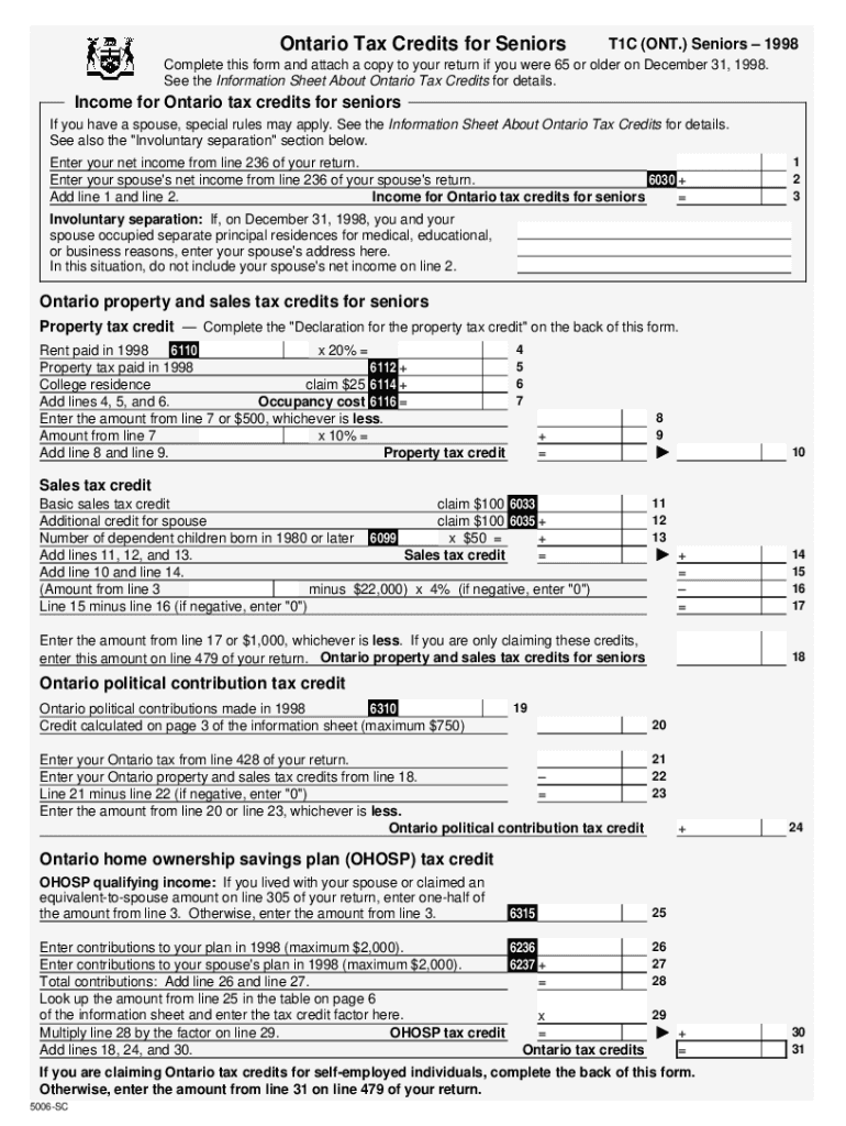 5006-SC T1 General 1998 T1C Seniors — Ontario filler. Choose a blank template from the list and complete it instantly. Try now!