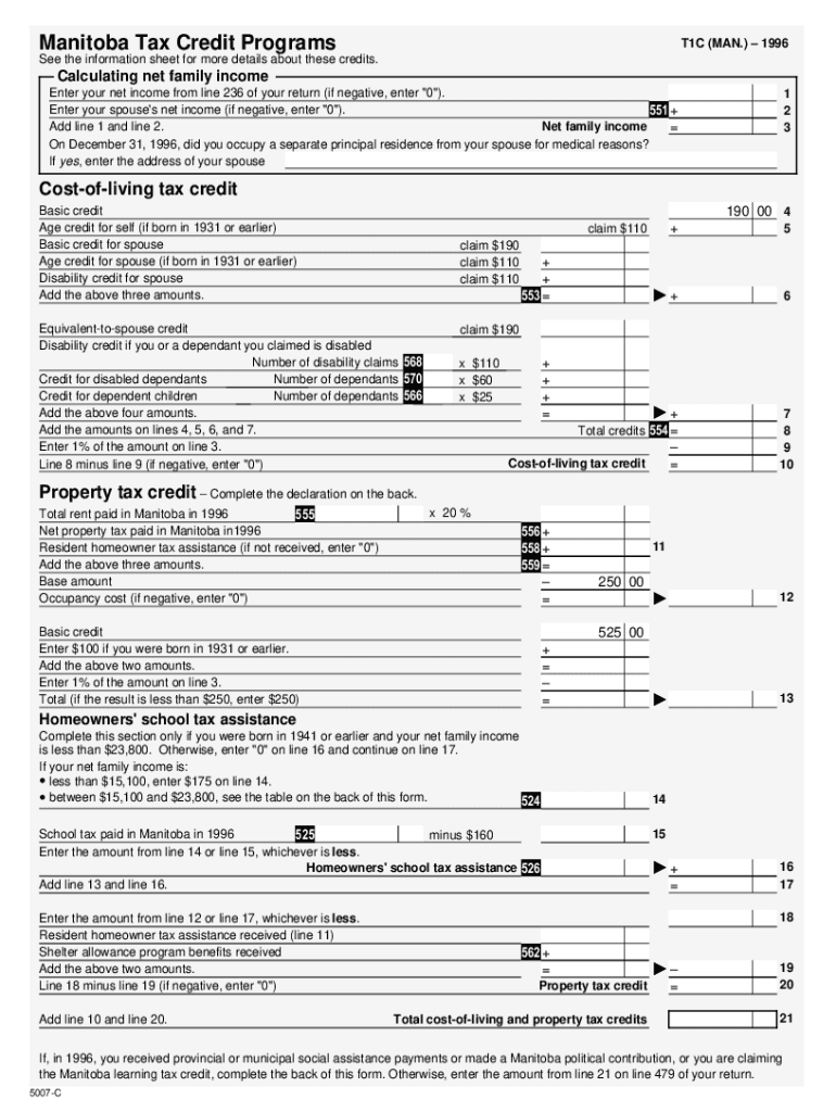 5007-C T1 General 1996 T1C — Manitoba filler. Choose a blank template from the list and complete it instantly. Try now!