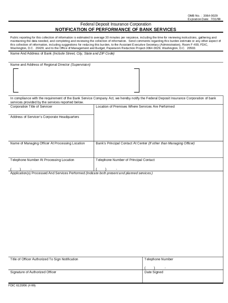 What is NOTIFICATION OF PERANCE OF BANK SERVICESOMB No Form?