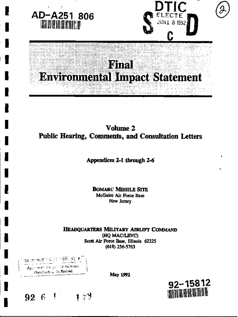 , ADA251 806IAD\'215 8SU Ii3\']TIC ELECTED JUNE 8 19925Final. Environmental Impact Statement Volume 2 Public Hearing, Comments, and Consultation Letters Appendices 21 through 26IBOMAC MISSILE SITE