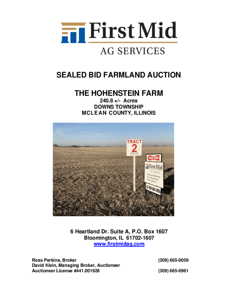 SEALED BID FARMLAND AUCTION THE HOLSTEIN FARM 240.8 +/ Acres DOWNS TOWNSHIP McLean COUNTY, ILLINOIS6 Heartland Dr. Suite A, P.O. Box 1607 Bloomington, IL 617021607 www.firstmidag.com Ross Perkins,