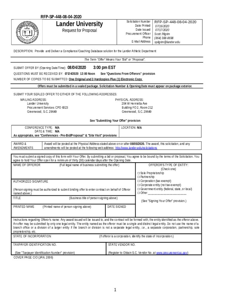 DESCRIPTION:Provideand Deliver a Compliance/Coaching Database solution for the Lander Athletic Department: frequently asked questions