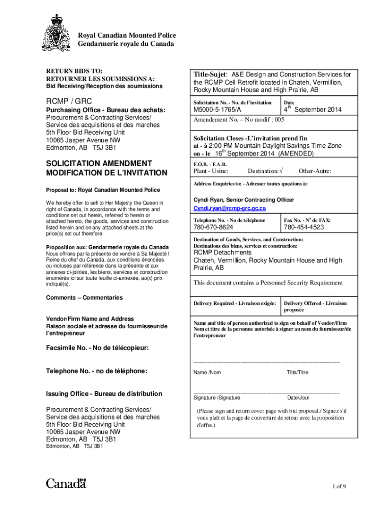 Royal Canadian Mounted Police Gendarmerie royale Du CanadaRETURN BIDS TO: RETURNER LES COMMISSIONS A: Bid Receiving/Reception DES soumissionsTitleSujet: A&E Design and Construction Services for the