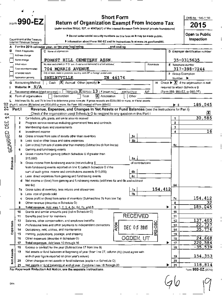 , Short Form Return of Organization Exempt From Income Reinform 990eii\'EZ OMB No 15451150Under section 501(c), 527, or 4947(a)(1) of the Internal Revenue Code (except private foundations)Department