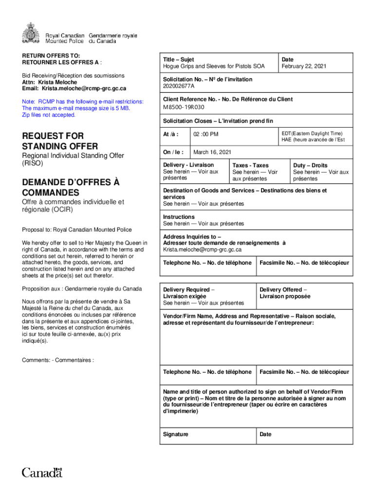RETURN OFFERS TO: RETURNER LES OFF RES A : Bid Receiving/Reception DES sou missions Attn: Krista Moloch Email: Krista.meloche@rcmpgrc.gc.ca Note: RCMP has the following email restrictions: The maximum