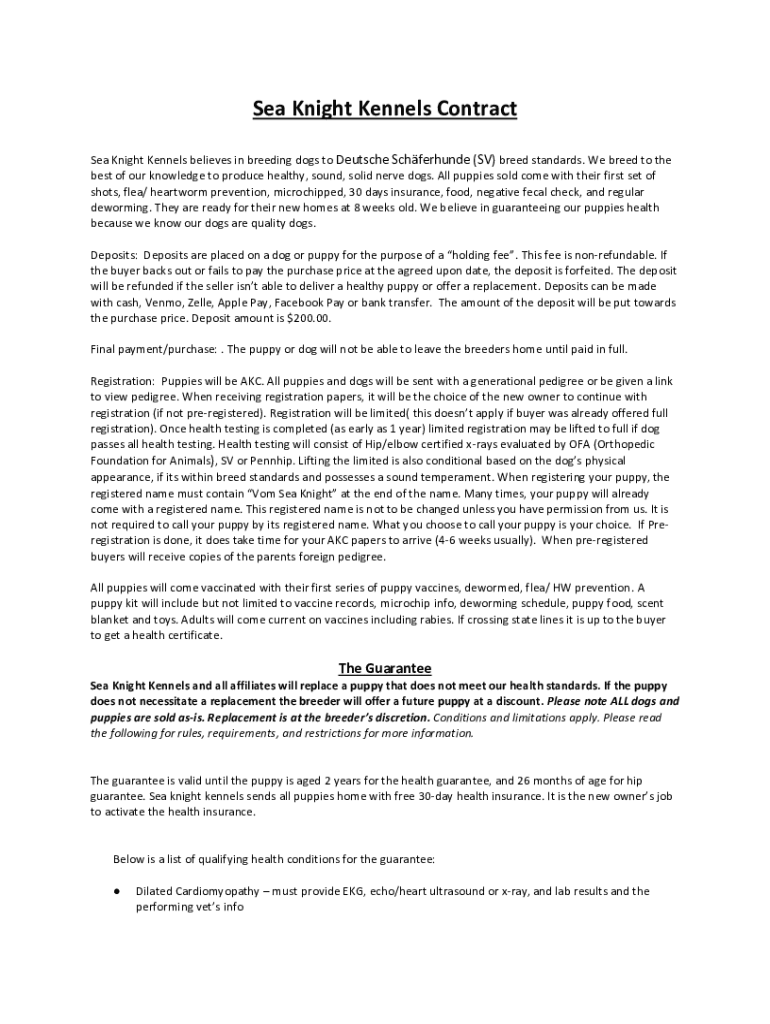 Sea Knight Kennels Contract Sea Knight Kennels believes in breeding dogs to Deutsche Schferhunde (SV) breed standards. We breed to the best of our knowledge to produce healthy, sound, solid nerve