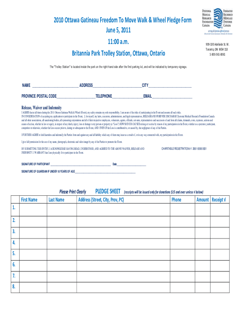 Get the free 2010 Ottawa Gatineau Freedom To Move Walk & Wheel Pledge Form