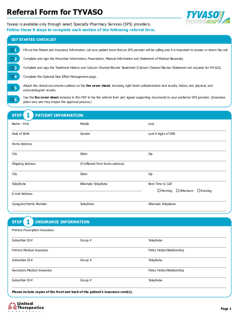 Referral Form for is available only through select Specialty Pharmacy Services (SPS) providers. Follow these 6 steps to complete each section of the following referral form. GET STARTED CHECKLIST1Fill