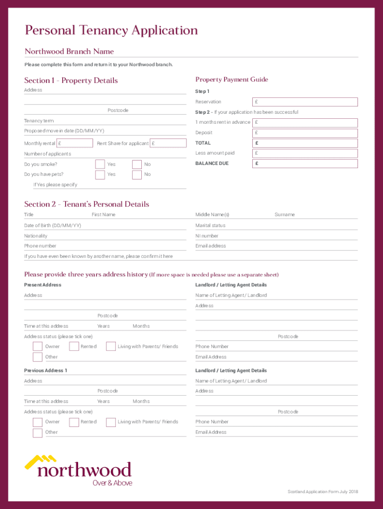 Personal Tenancy Application North wood Branch Name Please complete this form and return it to your North wood branch. Section 1 Property DetailsProperty Payment GuideAddressStep 1 ReservationPostcodeStep