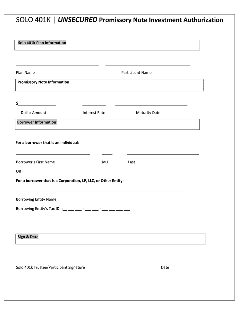 Get the free Solo 401k Promissory Note Authorization