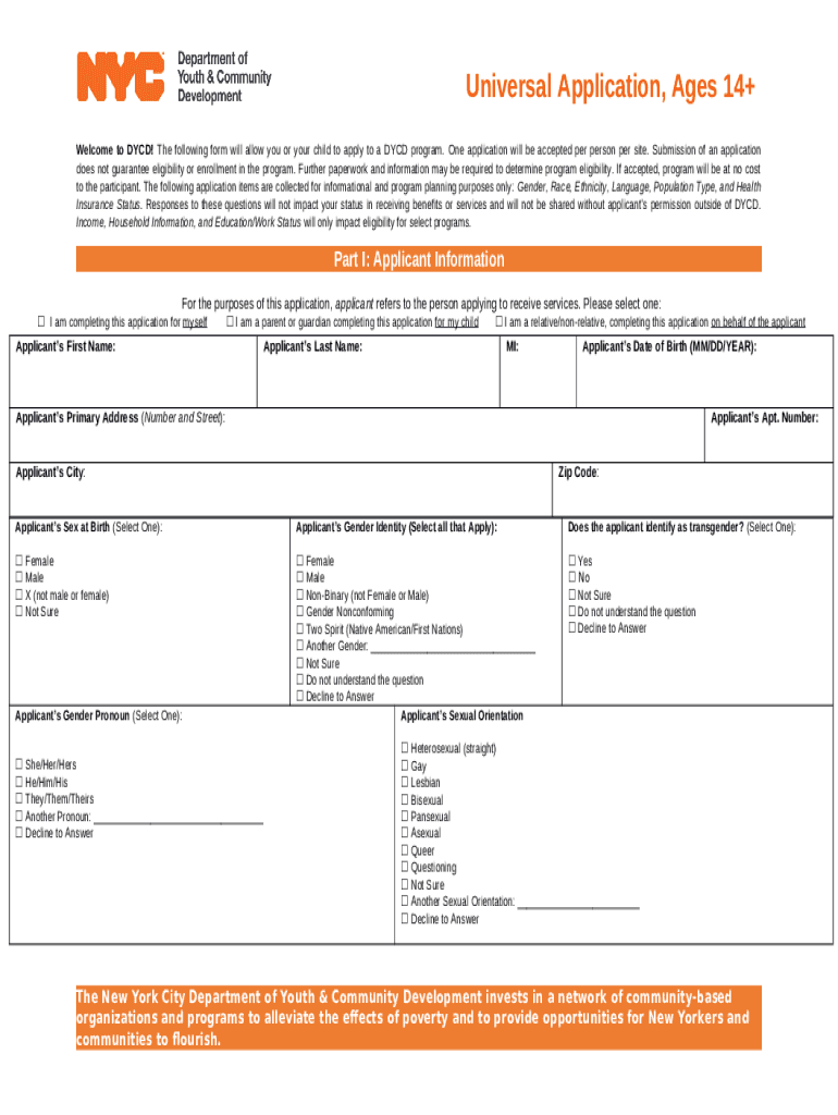 Frequently asked questions about the form DYCD Participant Xposure Foundation