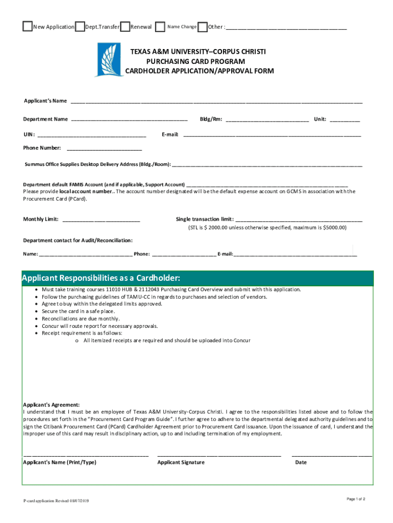 TEXAS A&M UNIVERSITY CORPUS CHRISTIPROCUREMENT CARD PROGRAM GUIDEUPDATED MARCH 2020TABLE OF CONTENTS Overview ...................................................................................................................................3