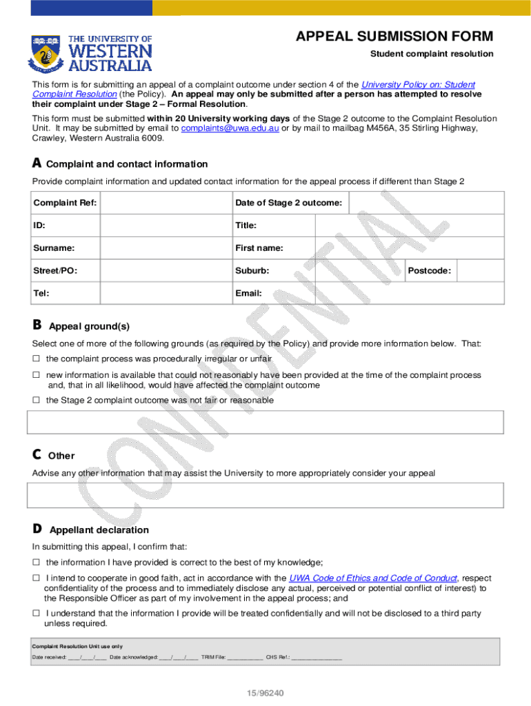 Get the free APPEAL SUBMISSION FORM - University of Western Australia
