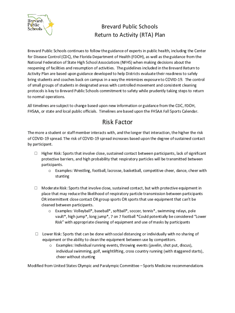 Get the free Brevard Public Schools Students Can Return to Sports ...