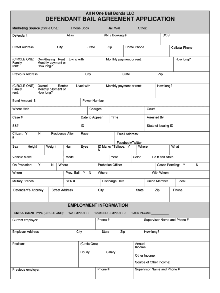 Get the free Defendant Bail Agreement Application