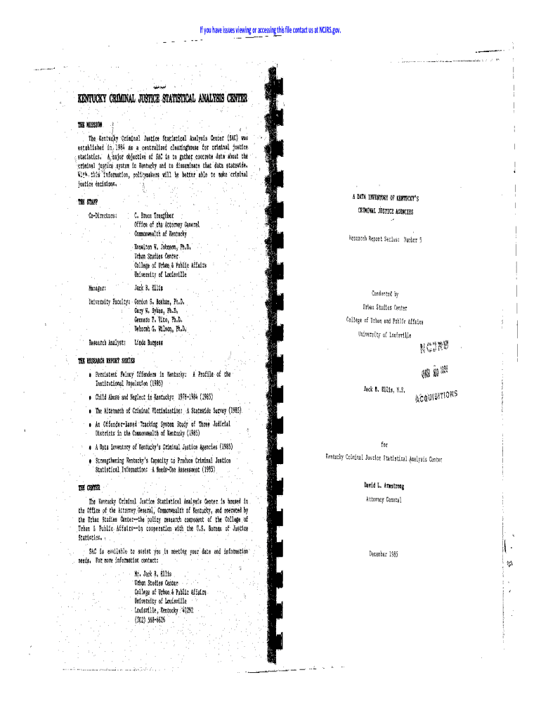 If you have issues viewing or accessing this file contact us at CARS.gov. KENTUCKY CRIMINAL JUSTICE, STATISTICAL ANALYSIS CENTER '!8E MISSION((It The Kentucky KY Criminal Justice Statistical Analysis