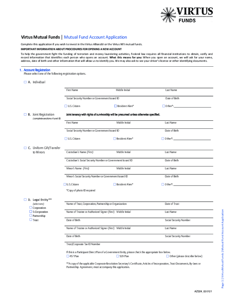Virus Mutual Funds Mutual Fund Account Application Complete this application if you wish to invest in the Virus Allianz or the Virus NFL mutual funds. IMPORTANT INFORMATION ABOUT PROCEDURES FOR OPENING