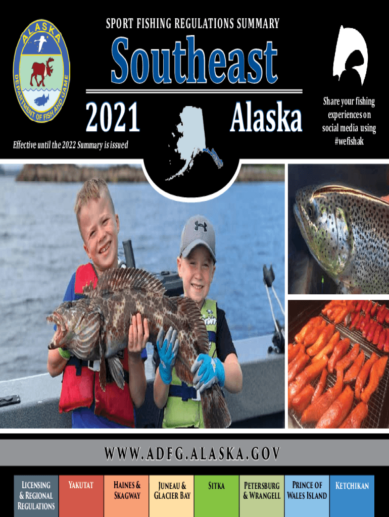 SPORT FISHING REGULATIONS SUMMARYSoutheast2021AlaskaEffective until the 2022 Summary is issuedShare your fishing experiences on social media using #Whishaw w. a d f g. An l an s k a . G o v Licensing