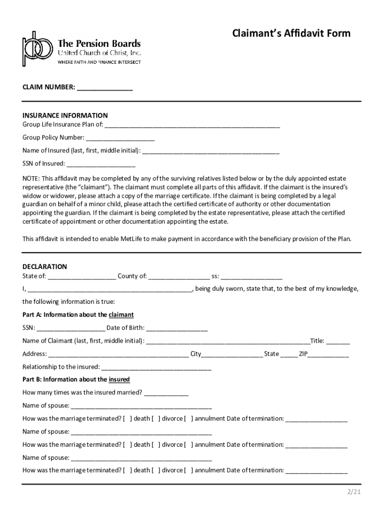 Get the free Brighthouse Life Insurance Claimant Affidavit For Waiver ...