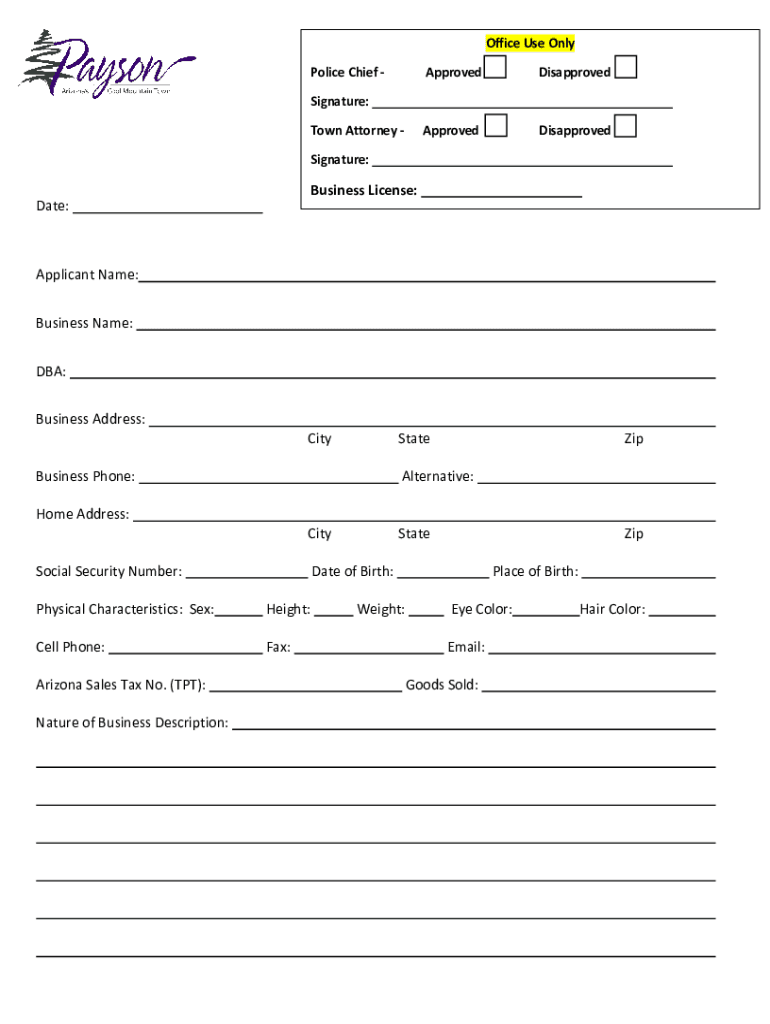 BUSINESS LICENSE REQUIREMENTS AND APPLICATION FOR A MOBILE FOOD VENDOR; PEDDLER; CANVASSER; SOLICITOR OR TRANSIENT MERCHANT Town of Payson Finance Department 303 North Beeline Hwy Payson, AZ. 85541