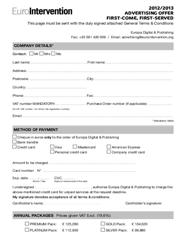MEDIA PACK 2013EuroIntervention The Multimedia Reference Journal for the Cardiovascular Community12T1995 EIC MUDPACK fiche1 03/08/12 16:17 Page1MEDIA PACK 2013 EuroInterventionWhy advertise in EuroIntervention?